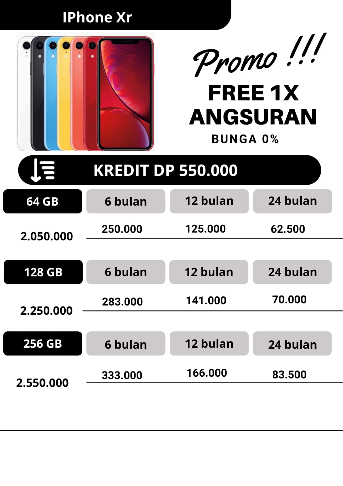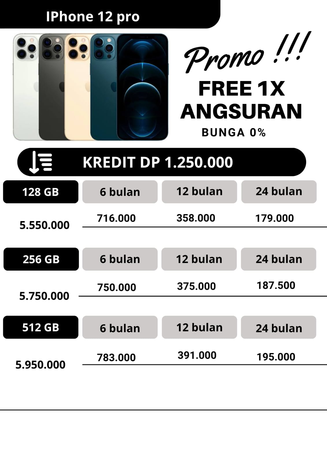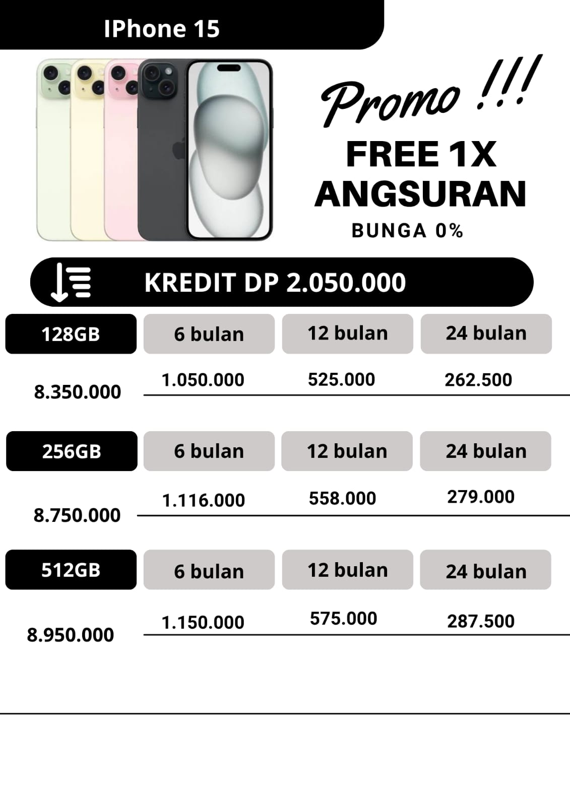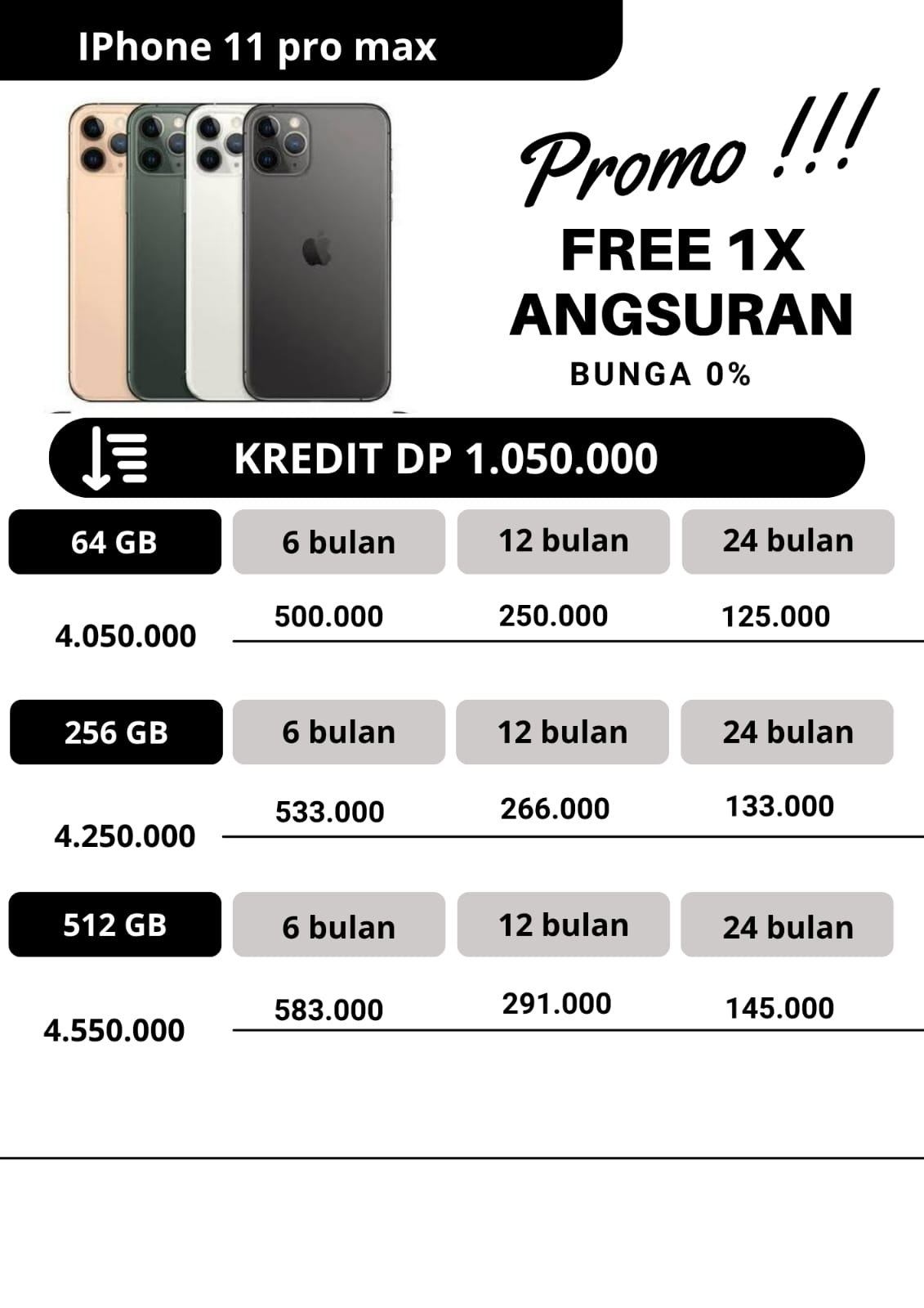 untuk promo kredit, apabila untuk angsuran pertama dan angsuran ke2 pembayaran angsuran tepat waktu dan pada tanggal yang sama,maka pada angsuran ketiga kakak dapat free 1x angsuran.